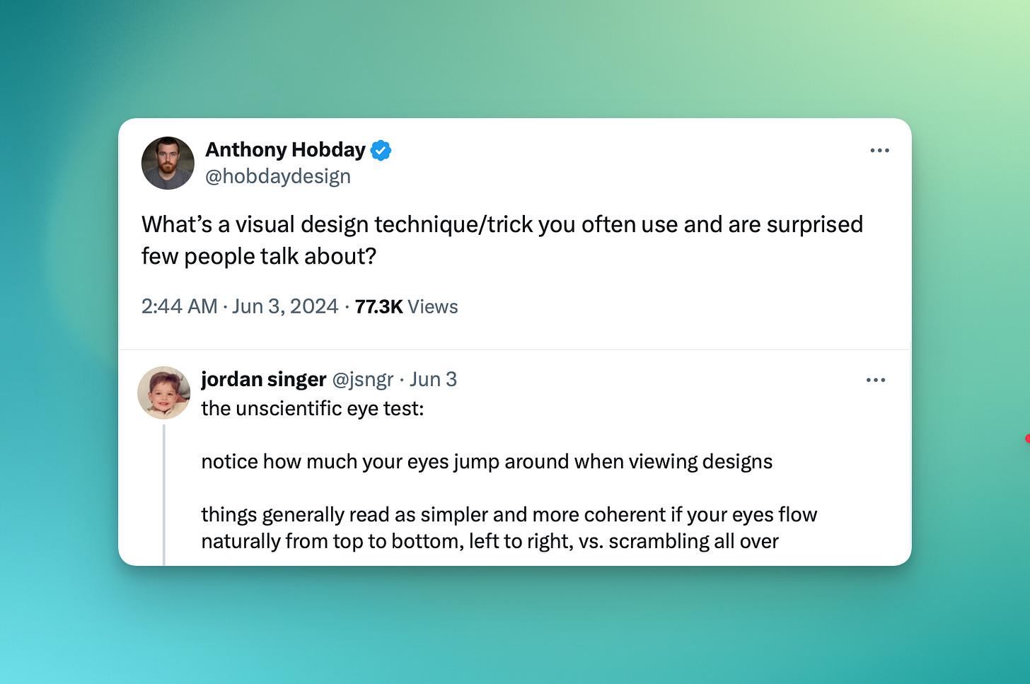 Related: use this tip from Jordan to evaluate your screen, in conjunction with the squint test!