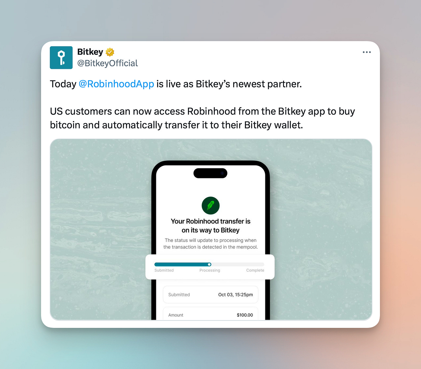 They’ve recently partnered with a bunch of exchanges, including Robinhood, Coinbase, and Cash App, to have a more deeply integrated bitcoin buying experience.